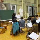 2015.02.07 小学校で鑑賞の授業 広報室ブログ 教職(中学校の先生の免許)を取っている学生が自分の作品を持って小学校に訪問!廊下や教室に作品を展示し、小学生の鑑賞の授業が始まり~ 学生はファシリテーター役と作者がペアになり、まずは自由に作品鑑賞。陶芸の作品に抱きついた …