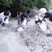 2015.05.28 染織コース研修旅行! 広報室ブログ 染織コースは三重県へ! 1日目は浜辺で貝を採取して・・・ハンマーで砕き・・・『腮下線(さいかせん)』 というモノを取り出して研修旅行前に彫っていた伊勢型紙をあてて布に刷り込んでいき、紫 外線で発色させ紫に染める体験を^^ …